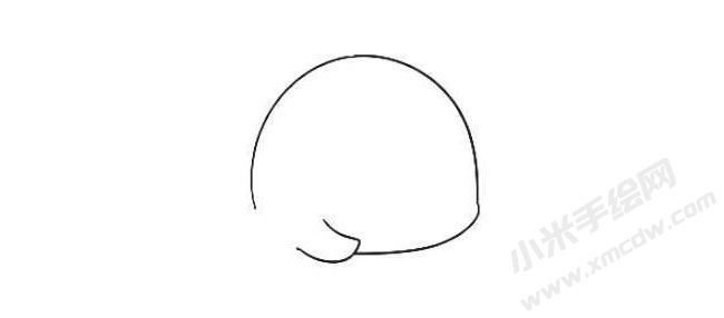 步骤1、画一个半圆弧表示头部。