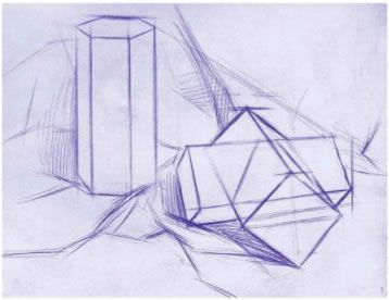 2.画出几何体及衬布皱褶暗部和投影的大致色调。