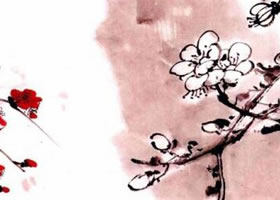 步骤五:画上远处梅花树的形态,注意用墨要清淡,形态上要配合前面那株梅树的动势。调整画面效果,最后题款盖印,完成画面。