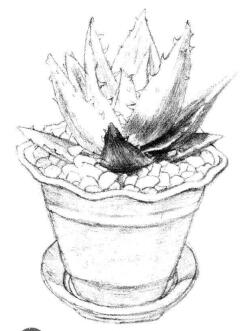 步骤六:继续添加线条和阴影,画出花盆内石子的明暗关系。