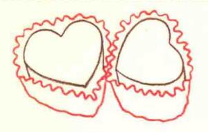 3.用大红色单线画出包装纸的褶皱和巧克力上面的果仁;