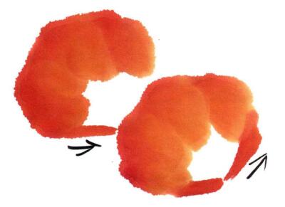 步骤一、用花青色调曙红色,三笔画出牵牛花的花头。