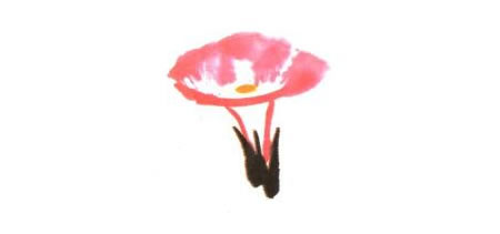图一、大白云笔调曙红色,先用中锋勾出花的前半圆,然后侧锋三笔画出后半圆,并画出下面花筒。