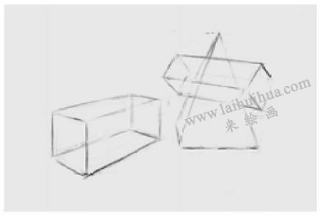 步骤二:反复比较,根据轮廓线用直线逐步切画出两个几何体的基本形体结构。