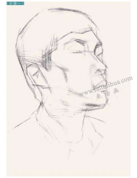 步骤一:构图时候要注意上下左右的距离,人物 正面要比脑后留的空间大,首先要交代清楚 模特儿的形象特征。