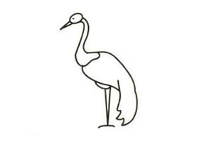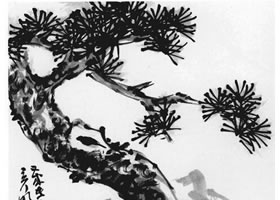 步骤一:把稿子用铅笔认真地、轻轻地拓到熟宣上,然后根据所描绘的物体用浓淡不同的线条和不同的笔法勾出来,鹤用均勻的线条,松叶用洒脱变化的线条,树干用粗放线条加皴檫画出,松针要先淡后浓勾两次。