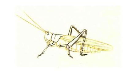 步骤一:先用淡墨勾出蚱蜢的身体各部分,再用重墨勾出眼睛和足节。