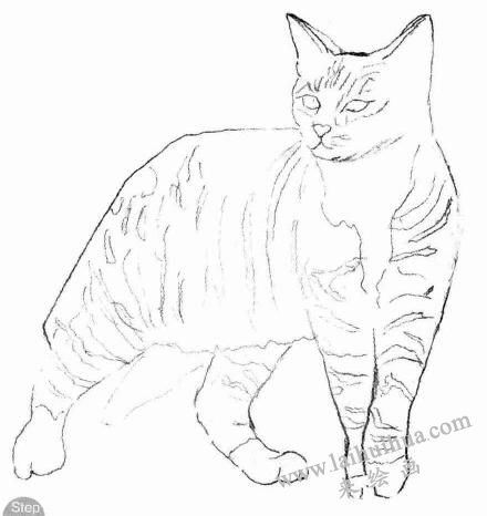 中国狸花猫素描画法步骤图示: