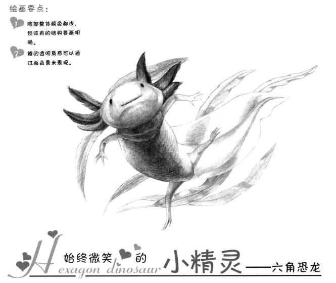 始终微笑的小精灵——六角恐龙的素描画法步骤图示: