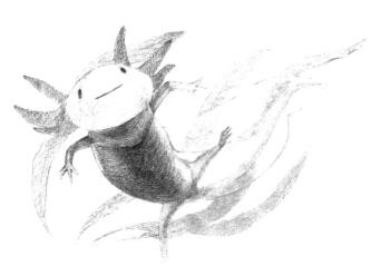1、从身体的明暗交界线开始画。小螈的身体是內色,但面对画面的胸腹部都处在暗面,要大胆使用灰色来塑造体积感。