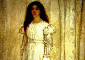 美国惠斯勒《白色交响乐,第一号,白衣少女》高清大图作品赏析。美......