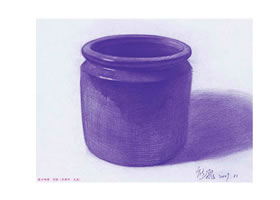 单个器皿素描明暗画法步骤图示(敞口陶罐的画法)。步骤一 运用几......