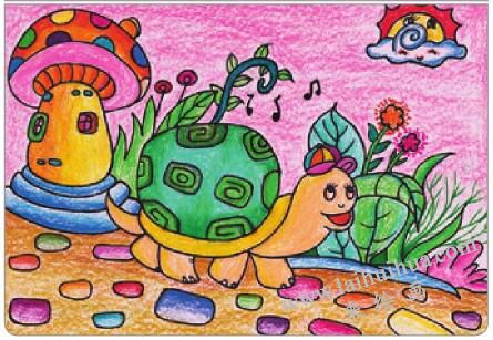 步骤一:画出乌龟走在路上唱歌的情景,添加周围的环境。