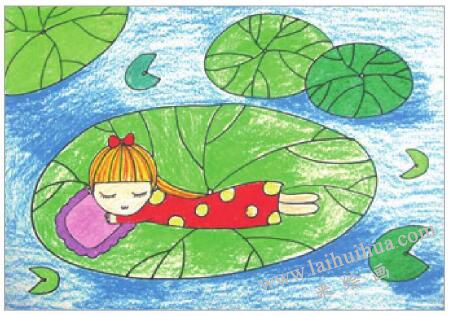 睡在荷叶上的娃娃油棒画画法步骤