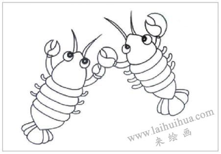步骤一:先用勾线笔画出一对龙虾的外形。