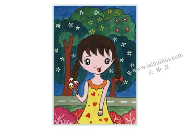 吃冰激凌的女孩水粉画作画步骤