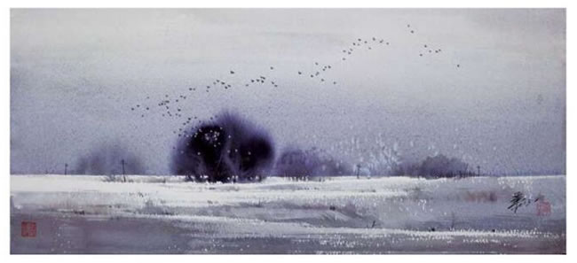④利用飞白产生的白色纸面,可以巧妙添画出人物、动物、飞鸟等。