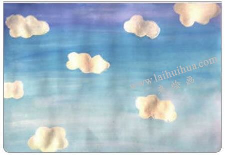 步骤二:在天空中添画上形态各异的白云。