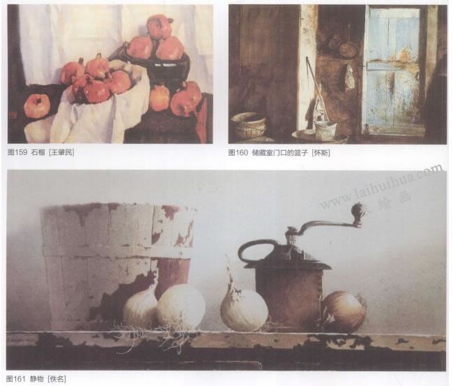 作者根据自身的生活体验、艺术修养确定表现主题,然后选择不同质感、形状、大小、色彩的静物逬行组合写生创作的方法。在摆放具体静物前,首先要明确主题,打好腹稿,做到立意在先。静物写生创作题材分类有:器乐类、蔬菜瓜果类、古陶青瓷类、生活生产器具类、生活场景类等。对静物的选择与摆放不应是随手拈来那么简单,应蕴涵着理性的思考与对形式规律的探索与追求。在完成创作的过程中绘画方法可以是写实的,也可以是表现的;表现技法上可以是传统的,也可以是各种材料技法综合运用。