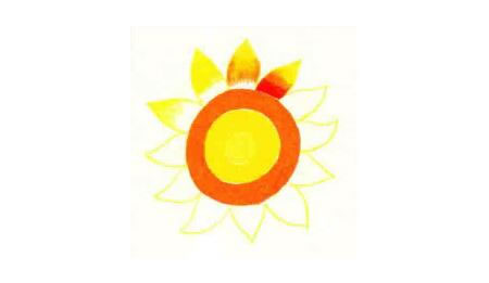 步骤三:用柠檬黄油画棒勾出花瓣,依次用柠檬黄、中黄、橘黄、橘红色油画棒从外往里涂色。