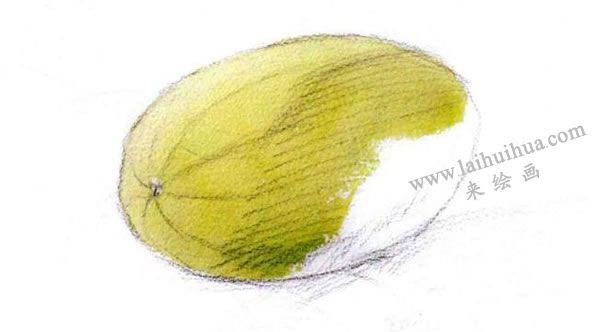步骤一:用HB或2B铅笔起稿,将哈密瓜的形体轮廓画出来。