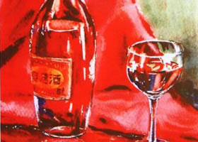 酒瓶与玻璃酒杯水彩画法步骤图示