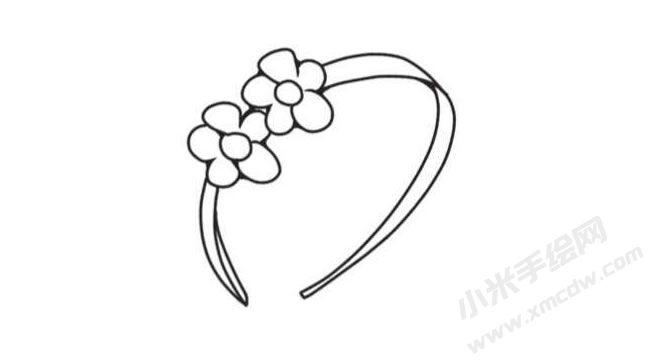 头饰简笔画创作步骤头饰,指戴在头上的饰物。步骤一:先画几个圆组成一朵花;步骤二:再画一朵花;步骤三:再画一条大大的弧线;步骤四:最后连成一个发箍。 未经允许不得转载:小米手绘网 » 头饰简笔画创作步骤图示