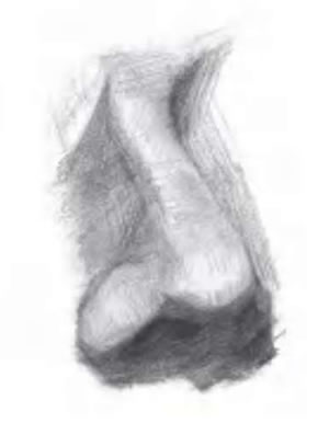 鼻子是脸部最凸出的部位,也是需重点刻画的对象。不问人物和不同角度的鼻子所呈现出来的形态会有所差别。