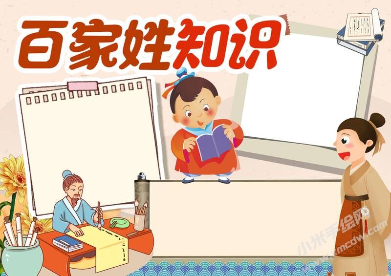 百家姓知识手抄报内容模板无字版