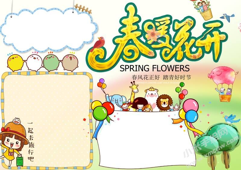 春暖花开手抄报内容模板有字版