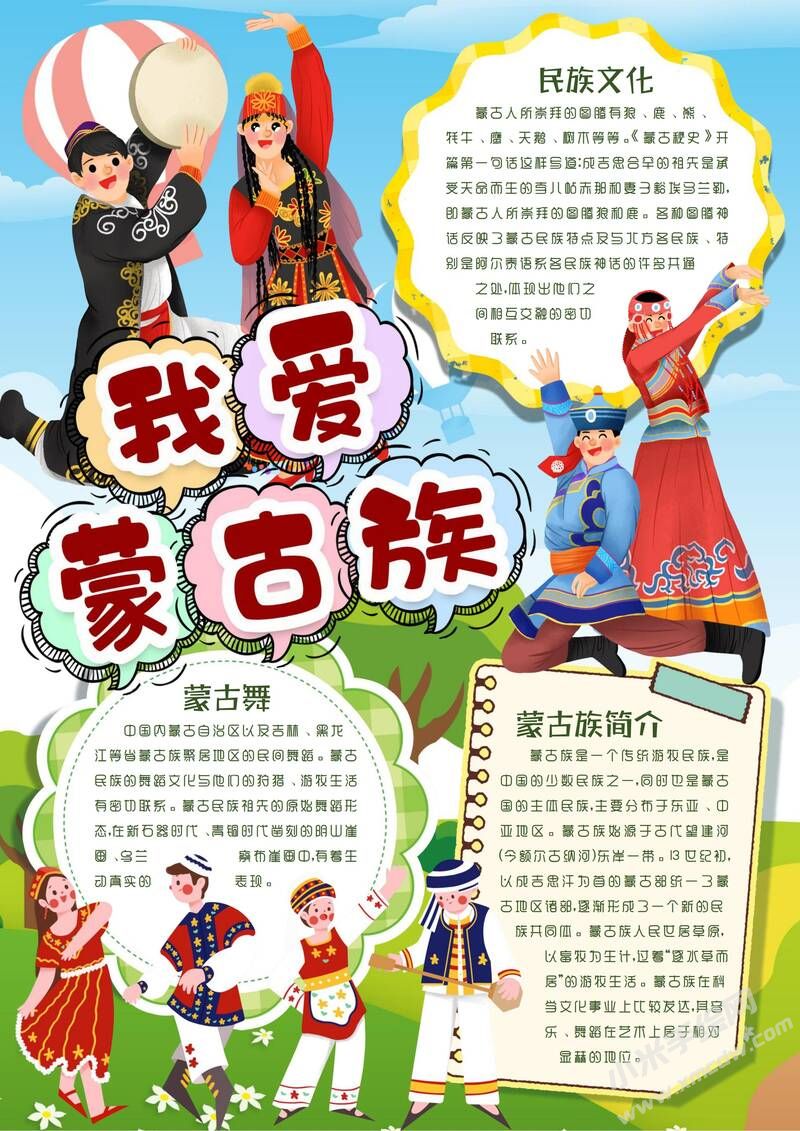 这份手抄报以 “蒙古族” 为主题,旨在全面展现蒙古族悠久的历史、独特的文化与多彩的民俗风情,增进大众对蒙古族的了解,推动各民族间的文化交流。设计融入大量蒙古族特色元素,营造浓厚的草原文化氛围,使读者在欣赏手抄报的过程中,领略蒙古族文化的独特魅力。