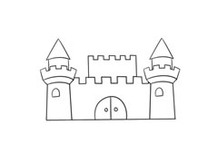 城堡简笔画绘制步骤图示,城堡简笔画图片。步骤1、先画一个长方形;步骤2、增加一个皇冠状的屋顶......