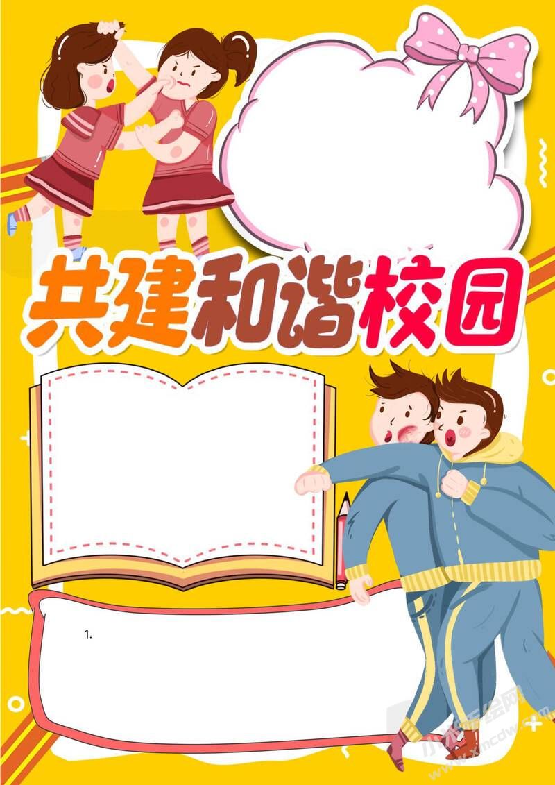 倡议与承诺:发出共建和谐校园的倡议,如倡导文明行为、反对校园暴力、参与志愿服务等。预留签名区域,邀请读者写下自己的承诺,表达共建和谐校园的决心。