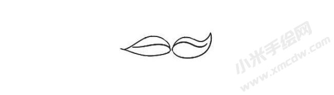 步骤1、画出两片对生的叶子。