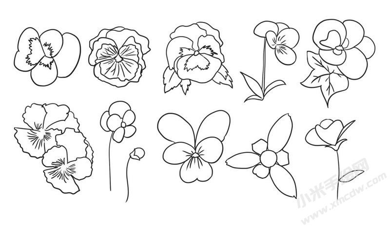 三色堇简笔画创作步骤三色堇是常见的一种野花,常栽培在公园中,是波兰的国花。步骤一:先画出三色堇的花蕊;步骤二:再画出花梗;步骤三:画出三色堇的另一只;步骤四:给三色堇添加花叶。 未经允许不得转载:小米手绘网 » 三色堇简笔画创作步骤图示